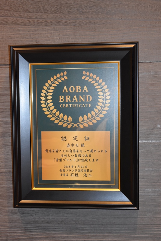 青葉ブランド認定証いただきました